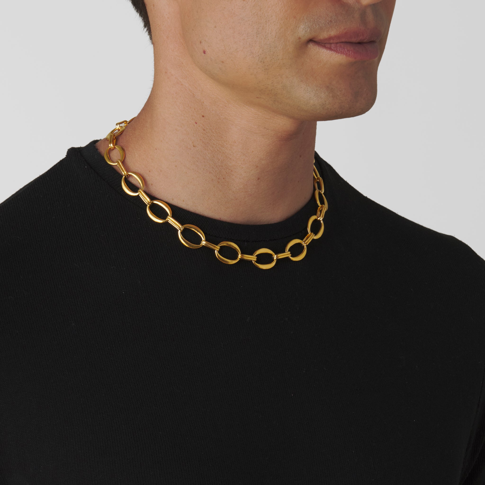 Two links entwined in rhythm, cast in pure 24k gold. The Double Link Chain is a study in symmetry and balance, timeless in its sculptural simplicity.