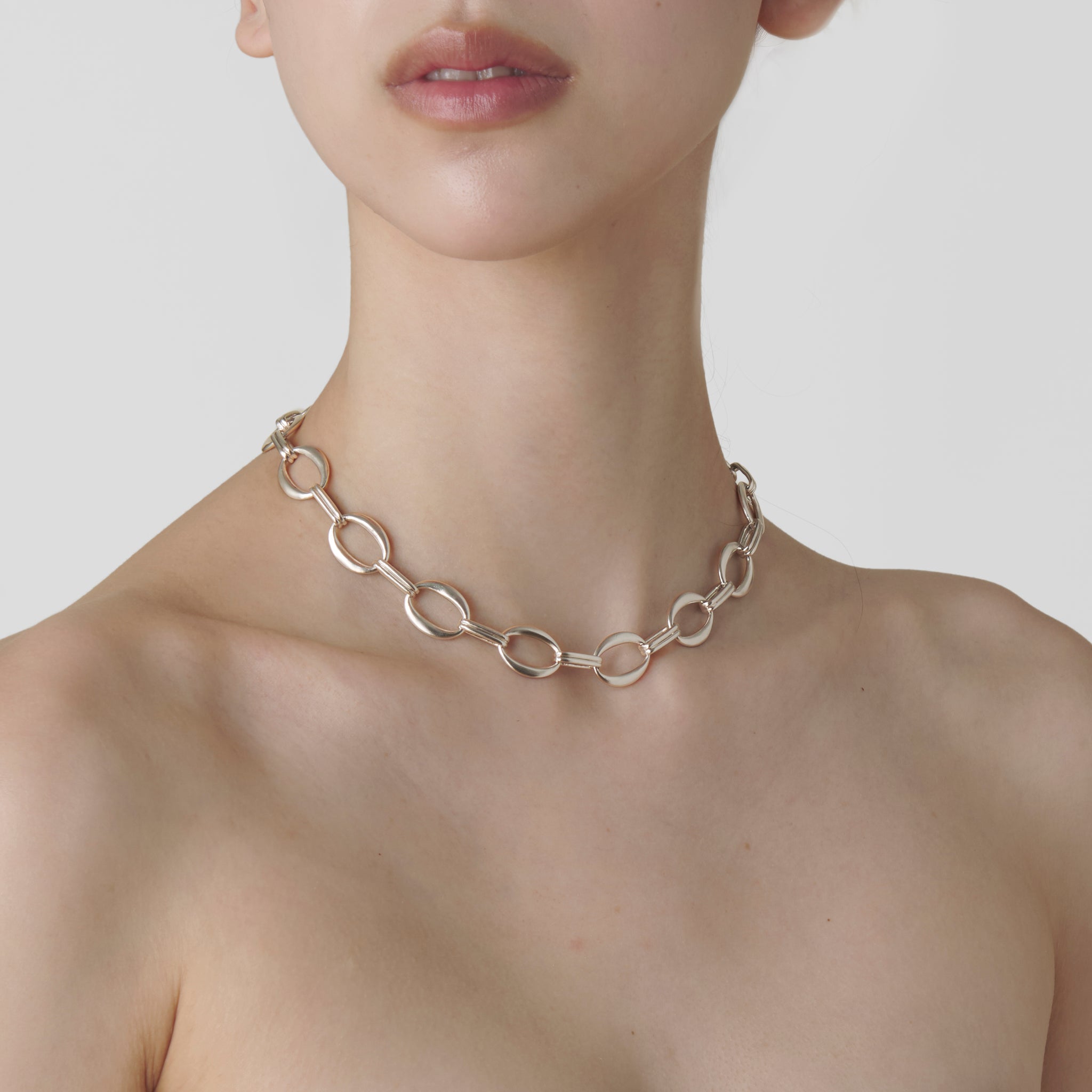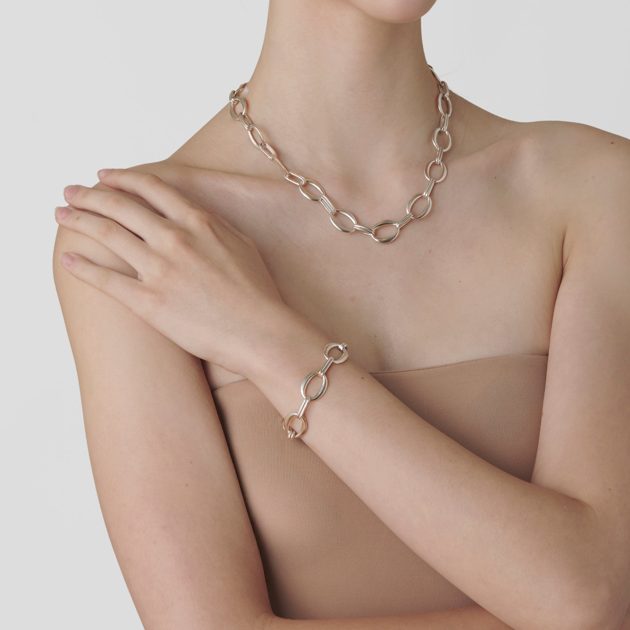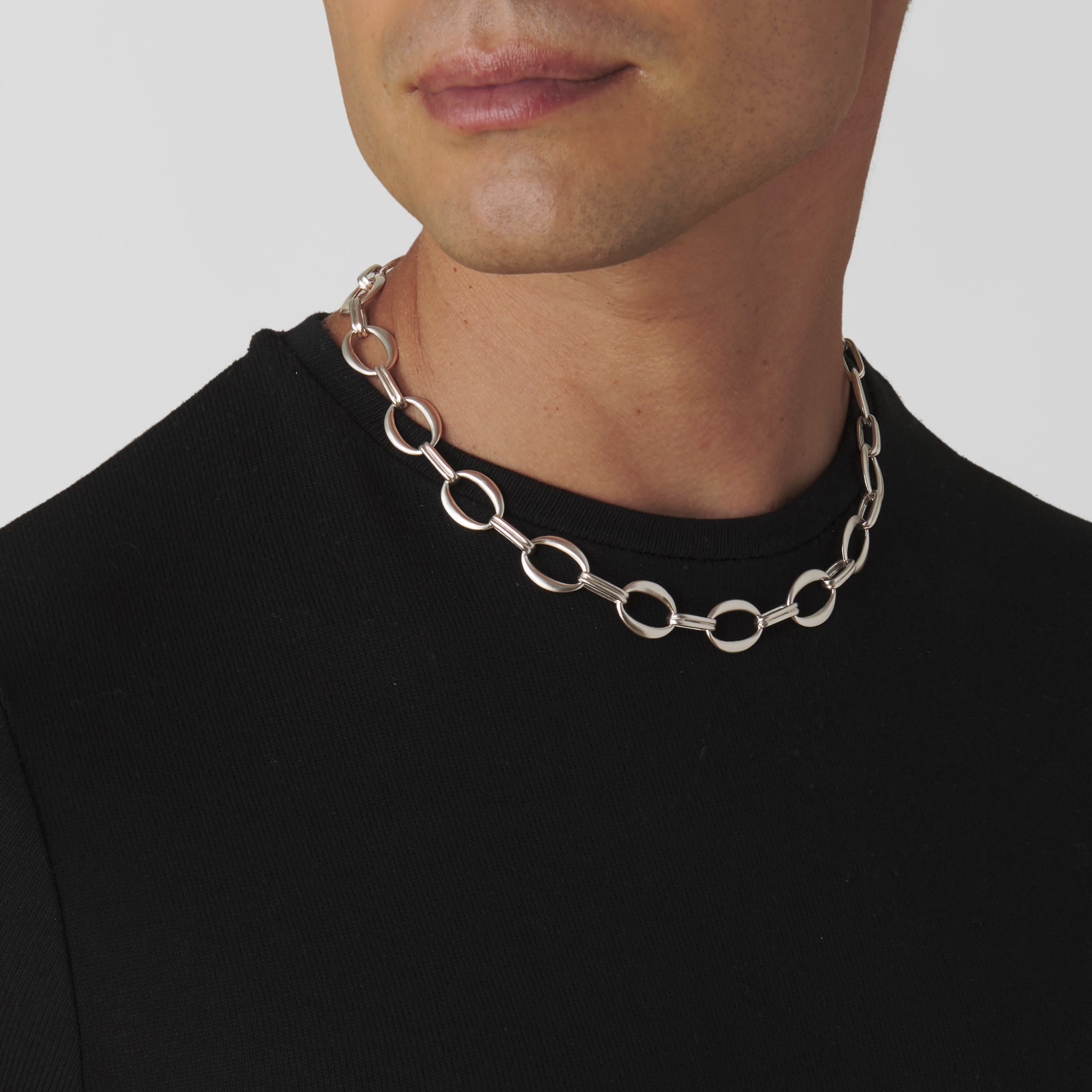 Twin links in sculptural rhythm, forged in pure platinum. The Double Link Chain Necklace embodies symmetry and resilience, designed to endure with quiet brilliance.
